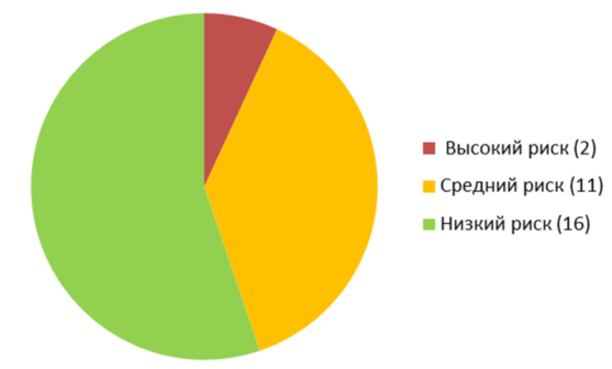 Найденные уязвимости группируются в отчете по степени риска и представляются в итоговой диаграмме.